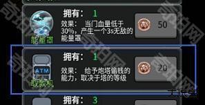 4、取款机:通过摆放炮台可以去偷取金币,获得去取款机即可偷取金币,从而达到升级效果,在商店中购买取款机。