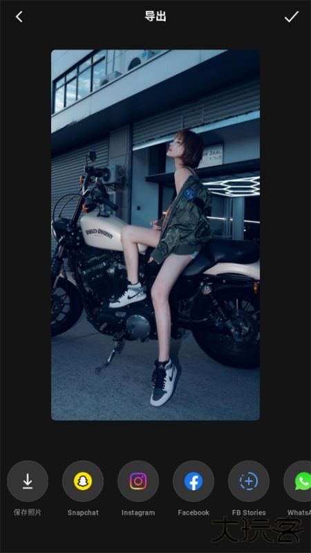 4、编辑完成后,点击右上角的下一步,选择保存照片或分享到社交平台。