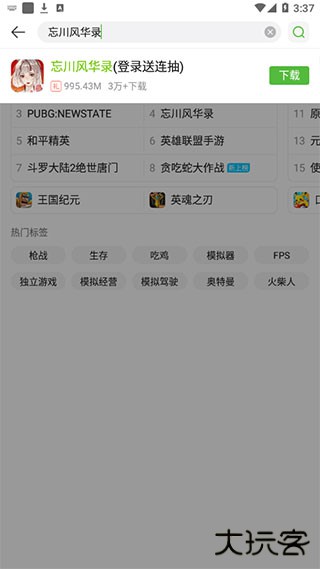 2、输入想要下载的游戏名称,比如忘川风华录,然后点击下载即可