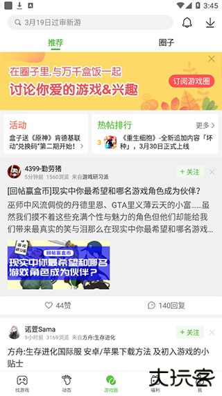 4、想要加入圈子结识好友的话,可以在“游戏圈”页面,订阅游戏圈,与其他用户一起讨论