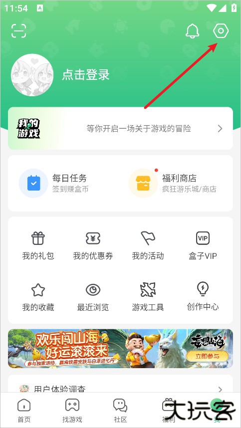 1、打开4399游戏盒app,点击右下角我的,然后点击右上角的设置