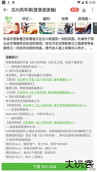 3、点击游戏封面或名称,即可进入游戏详情界面,查看游戏详细信息,以及专属福利等内容