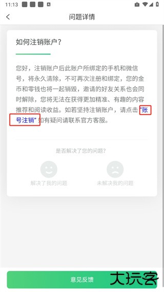 4、之后进入到问题详情的页面我们点击【账号注销】。