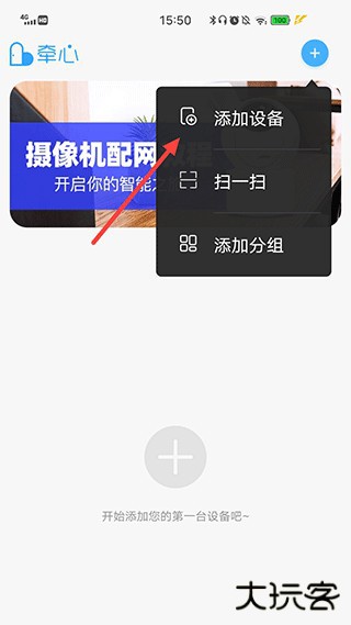 1、进入主页之后点击右上角的“+”,点击添加设备。