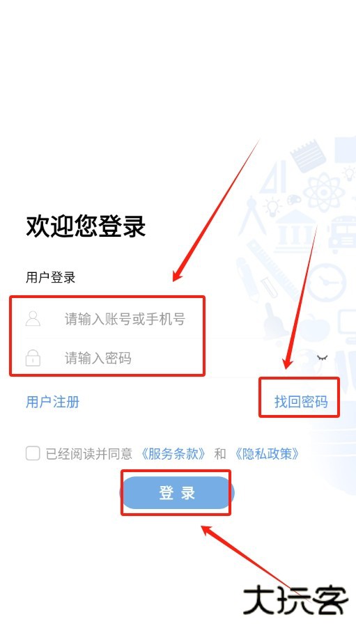2、进入登录界面,输入注册手机号和密码,点击登录按钮。