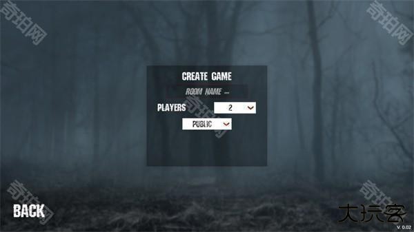 5、点击CREATE GAME创建游戏房间名字,选择玩家数量进入游戏。