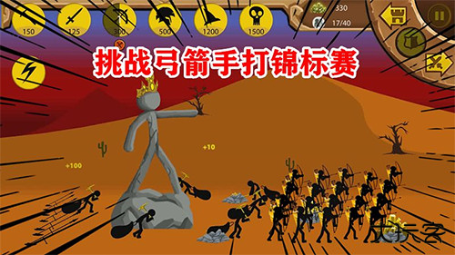 只要在抵御敌方攻击的同时,将敌方火柴人雕像摧毁即可获取游戏胜利。