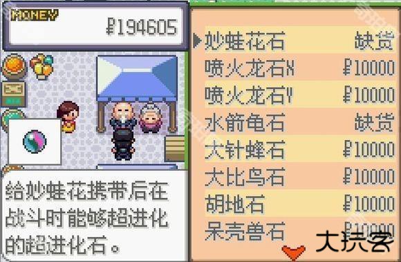至于超进化石,假如你没有开免刷的话,必须要先跟某个NPC对战,从他手里获得第一块进化后,才能从商店购买。