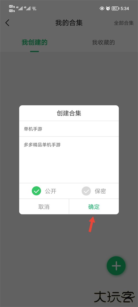2、点击加号创建一个合集,填写相关信息后点击确定