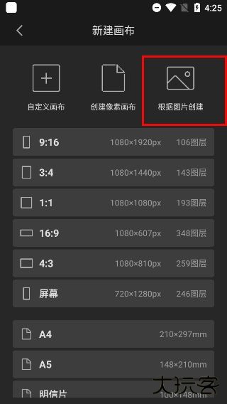 2、新建画布可自定义画布和创建像素画布,还可根据图片创建画布:导入需要临摹的图画,即可自动适配相同像素的画布;