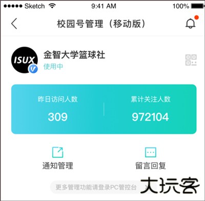 【手机端移动管控台】:移动端管控台可满足运营者实时查看号的用户和内容数据,回复用户留言等。