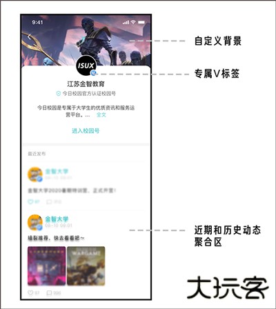 个性化:每个组织还能做个性化配置,建立自己特色校园号;