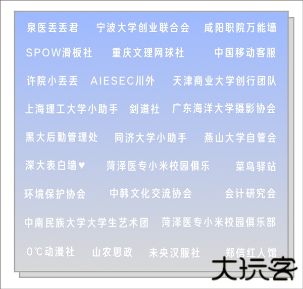 高校内的学生组织号或社团号。可设置默认关注成员,进行管理。适用于招募社员、活动发布、活动报名等多种社团活动场景。