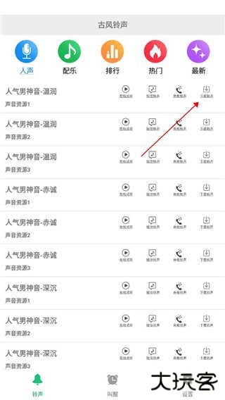 1、下载好app后点击进入,在首页选择一个喜欢的铃声下载。