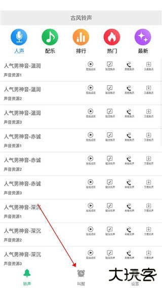 古风铃声闹钟中文版是为用户提供叫醒服务的软件,即闹钟软件。软件中汇集了各种不同声色的男神声音,因此更倾向于女生进行使用,她们可以在这里听到温润男声、赤城男声、文雅男声、混合男声等各种声调,从而在被叫醒时,获得不同的叫醒体验,对于叫醒服务的音色,用户还可以自行的进行塑造。
