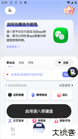 语八哥键盘是部旨在提升社交与沟通效率的AI聊天键盘,通过智能算法生成幽默、正式或温情等多风格回复,支持在微信等社交软件中直接调用。应用具备对象身份识别与情绪分析能力,可根据老板、同事、伴侣或客户自动调整回复方式,并在对话过程中实时给予节奏提示。语八哥键盘下载用户还能使用丰富标签库与自定义标签,让生成内容更贴合个人表达风格,适用于职场沟通、恋爱互动及社交破冰等多种情境。
