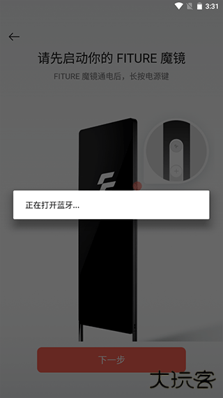 4、下一步后会弹出一个提示,需要打开蓝牙。这时候将手机离魔镜近的地方打开蓝牙进行匹配,匹配成功后就连接成功了。