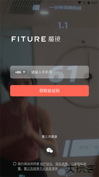 1、打开fiture魔镜app,输入手机号和验证码登录软件;