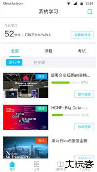 5、完成课程后进入考试模块,参与测评或练习题巩固内容。