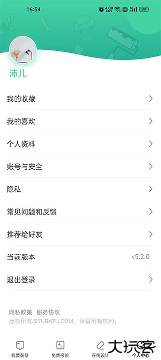 4、点击个人中心,在这里可以查看自己收藏喜欢的设计装修方案。