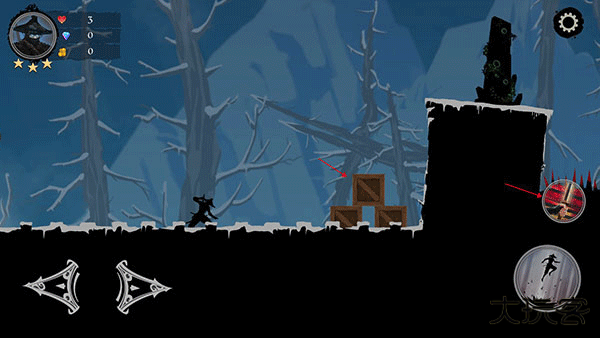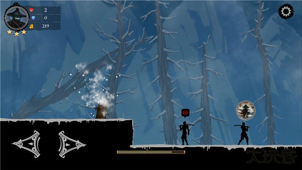 忍者岚2是一款忍者横版闯关冒险游戏。游戏画面暗黑风格,一身黑衣,在黑夜里面执行任务,简单的故事模式,在困难重重的关卡重展示自己强大的实力。几十个不同阶段的故事可以选择,全新的技能可以点击,强化自己的能力。