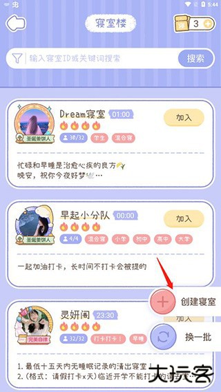 2、之后点击下面的创建寝室。