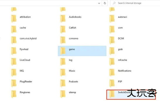 2、switchdroid文件夹中包含3个文件夹,分别是:game,keystore,nand和一个bin文件,将提前下载好的游戏rom文件(xci或者nsp格式)放入game文件夹中