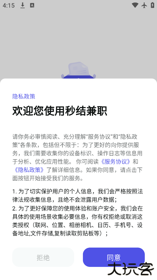 1、首先打开软件阅读完隐私政策后,点击“同意”按钮进入APP。