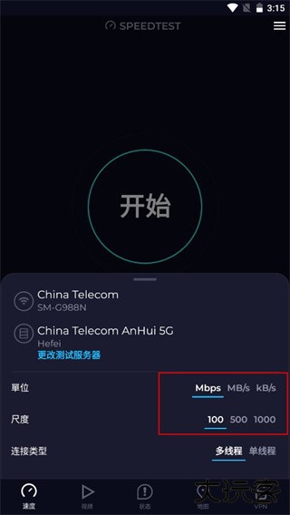 2、在弹出的界面可以自由选择不同的单位来进行测试。