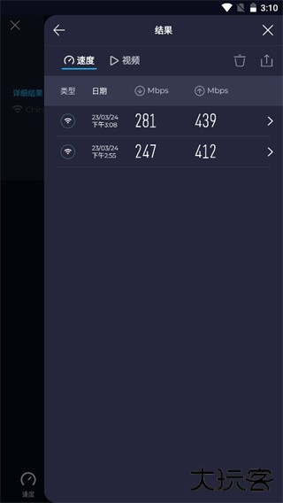 点击右上角图标,即可在下方看到历史检测网速结果,点击“结果历史”。