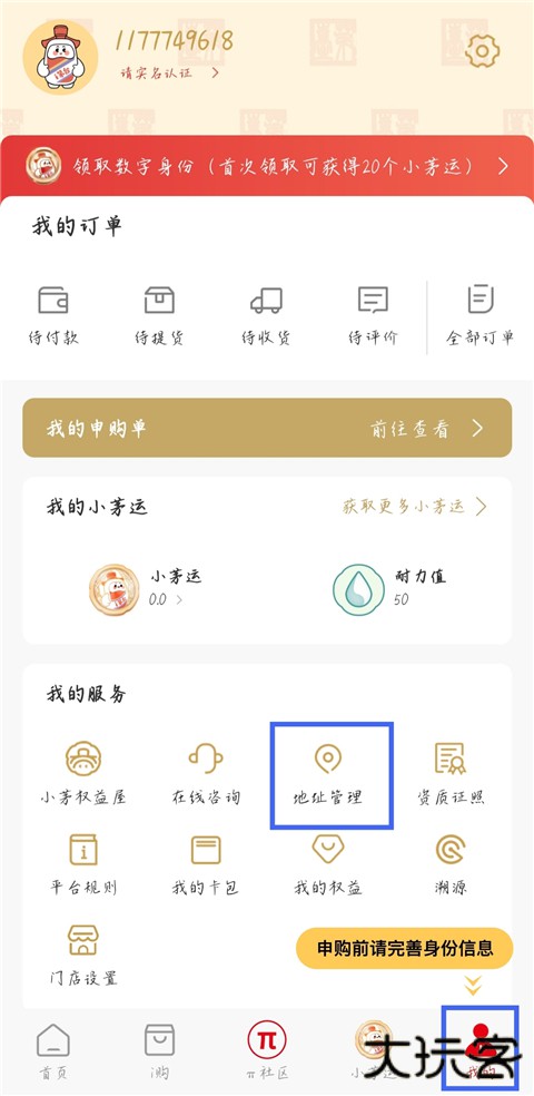 1、打开i茅台app,进入【我的】主页,点击【地址管理】。