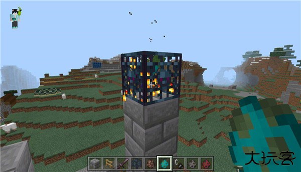 5.然后我们把这个刷怪笼放在柱子上面;