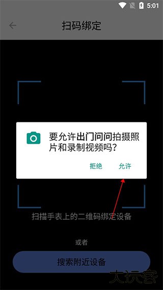 5、将扫描框对准手表上的二维码进行扫描绑定即可。
