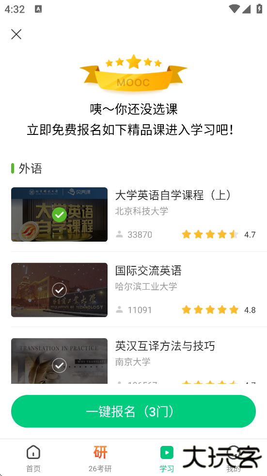 2、整合清华、北大等500余所高校的3.2万门课程,覆盖本科、高职全学科领域,包括视频公开课、资源共享课及虚拟仿真实验项目。支持按学科、院校精准检索,提供高清视频与配套课件下载。