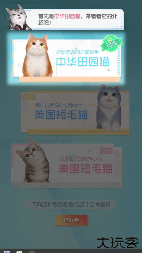 3、选择自己领养的猫咪类型。点击选好了;