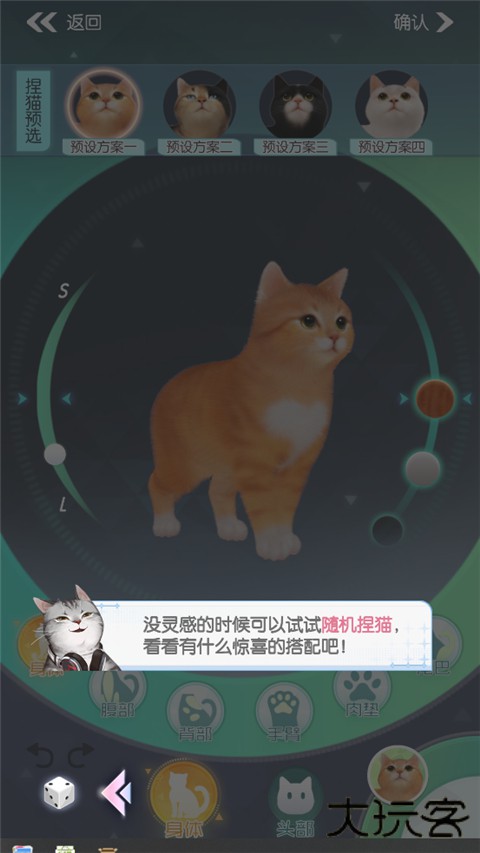 5、如果没有什么灵感的话,可以点击筛子,随机捏猫,之后点击确定即可;