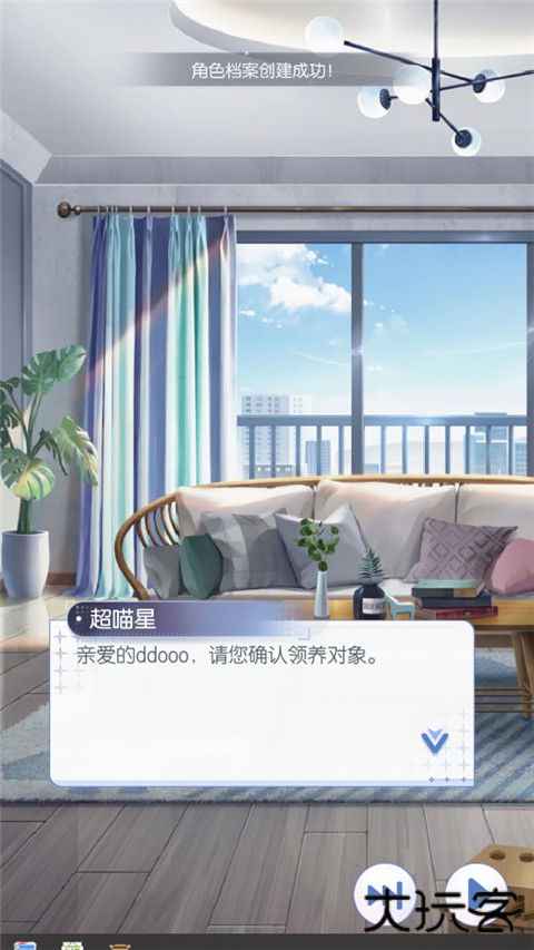 2、进入剧情读白,选择输入自己的名字,确认自己的领养对象;