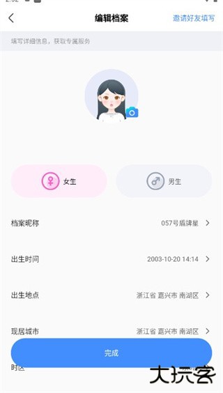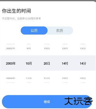1、登录软件,进入软件前填写资料你就可以设置自己的星座了;