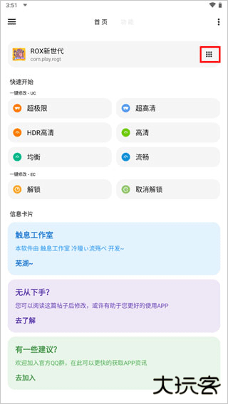 1、打开lt画质助手app,点击下图红框内的图标