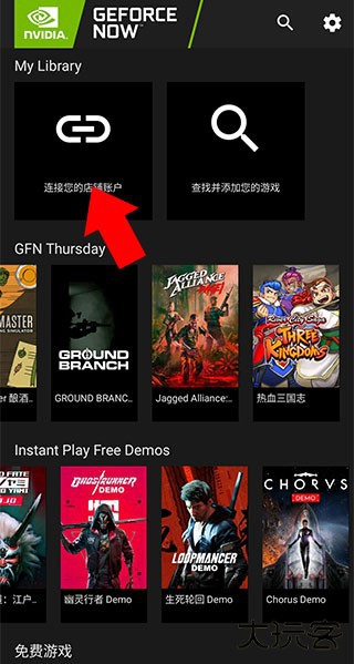 1、打开GeForceNOW软件,注册登录后来到下方界面,点击【连接您的店铺账户】按钮