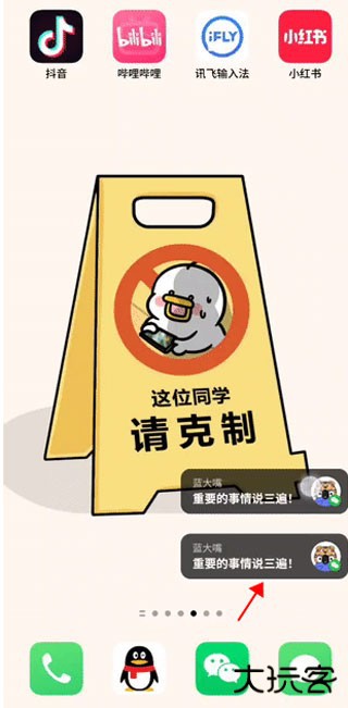 4、向屏幕外侧滑动可清除所有气泡消息。