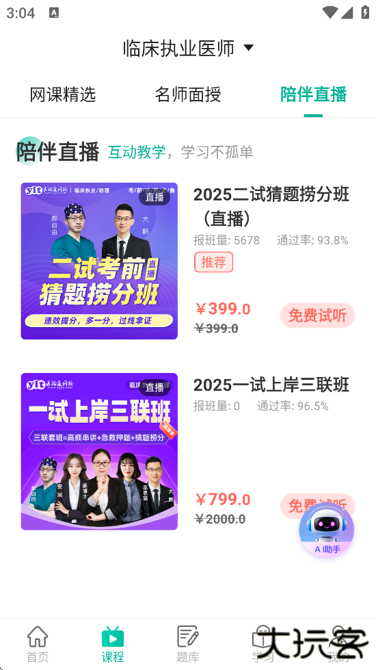 2、多课程自由切换:针对医疗从业者设计个性化界面,支持执业医师、药师、护士等课程快速切换,适配多考试需求。