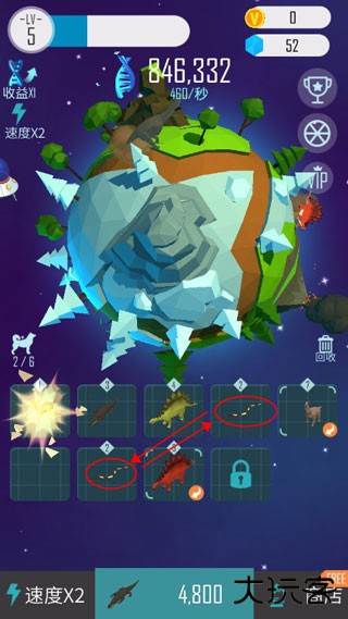 经典合成玩法超省心 —— 上班摸鱼时随手拖拽两只相同恐龙,唰!合成出披毛犀猛犸象;睡前点点屏幕,猛犸象又变身机器人猩猩。离线也能自动挂经验,碎片时间都能玩转生态圈!