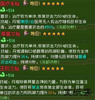 好感度 2:解锁被动技能【战地治疗】(使用技能后,血量最低单位额外恢复生命)及【不可侵犯】(攻击丹妮的目标短期内攻击速度降低)。