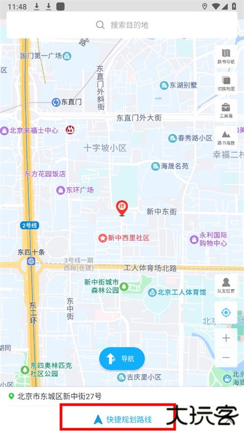 5、将终点坐标移到你的目的地,点击下方的快捷规划路线,最后点击导航即可。