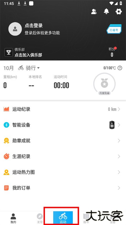 1、首先打开行者骑行APP,进入页面之后,在底部菜单栏中间找到"运动"选项,点击进入运动地图页面;