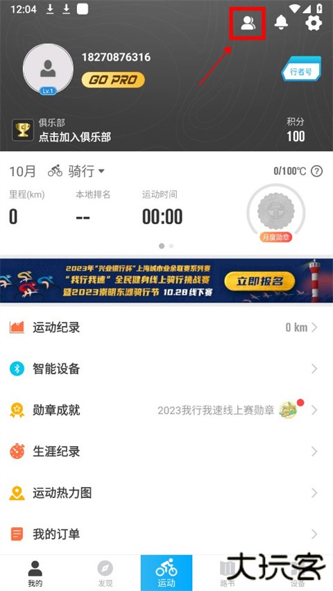 1、在行者骑行app我的页面中,点击右上方的好友功能;