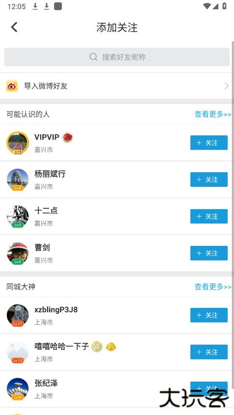 3、可以通过搜索好友昵称、关注、导入微博好友进行添加。