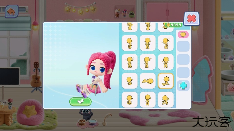 4.切换至动作设置界面,可为角色选择并应用各种姿势。注意在此界面中,可在特定区域获取大量金币奖励。