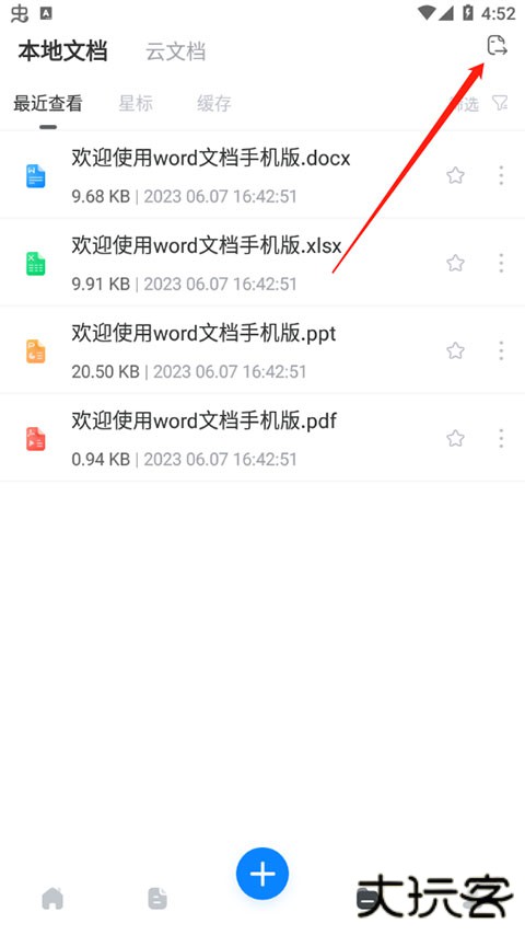 2、这里有本地文档和云文档,我们选择右上角的导入文件